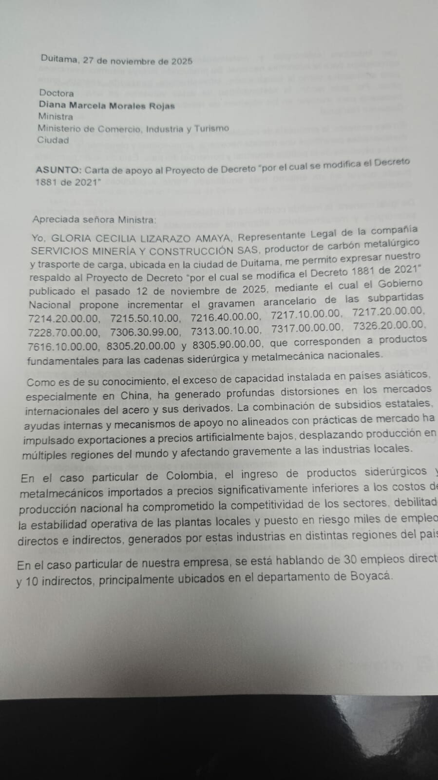 El sector privado destacó que esta decisión es clave para enfrentar importaciones que ingresan al país a precios artificialmente bajos, distorsionan el mercado y ponen en riesgo una industria estratégica para la reindustrialización, la transición energética y la descarbonización, prioridades del Gobierno del presidente Gustavo Petro.