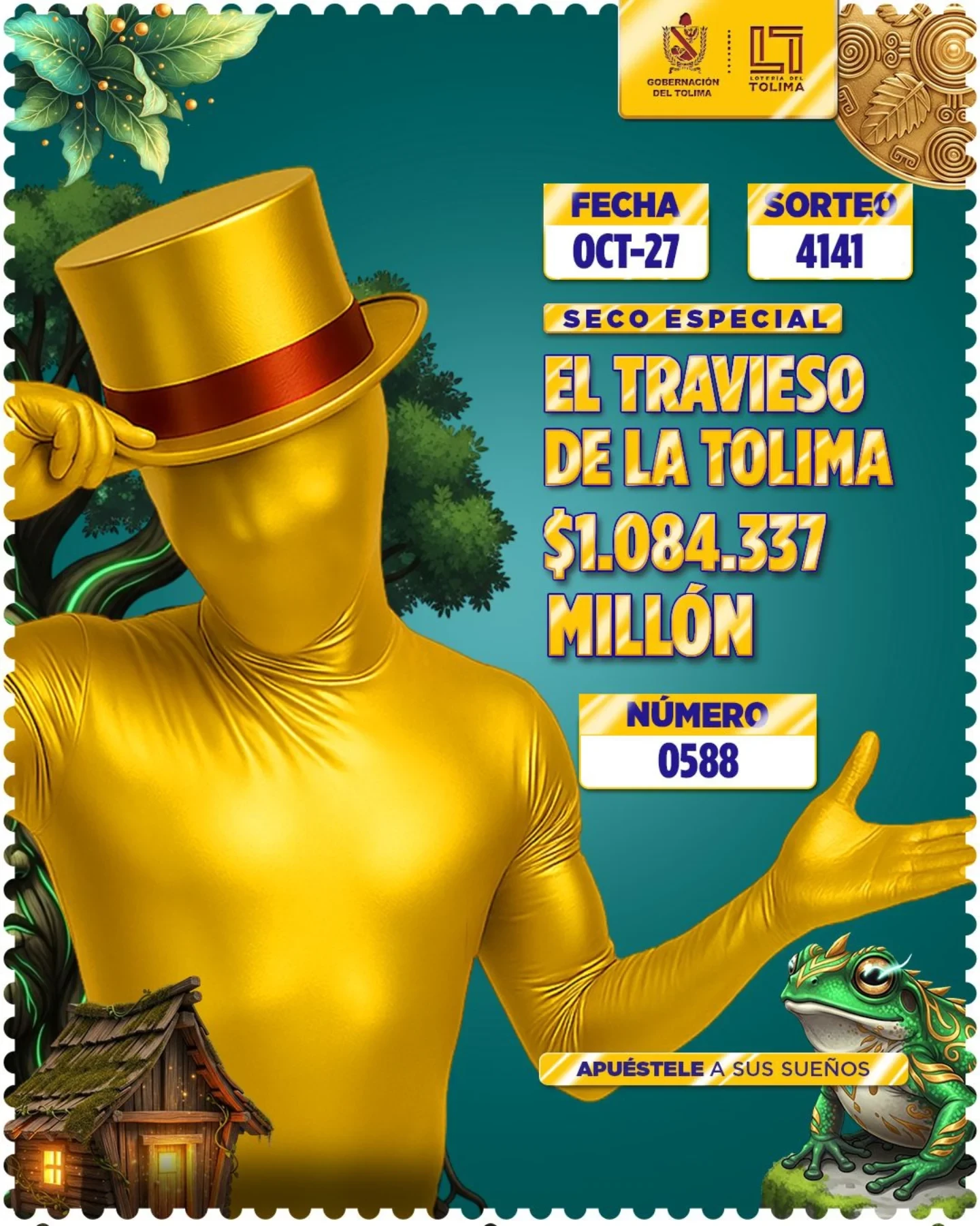 El sorteo 4141 de la Lotería del Tolima, celebrado este lunes 27 de octubre. Brindó una nueva oportunidad de convertirse en millonario a cientos de jugadores en todo el territorio colombiano.