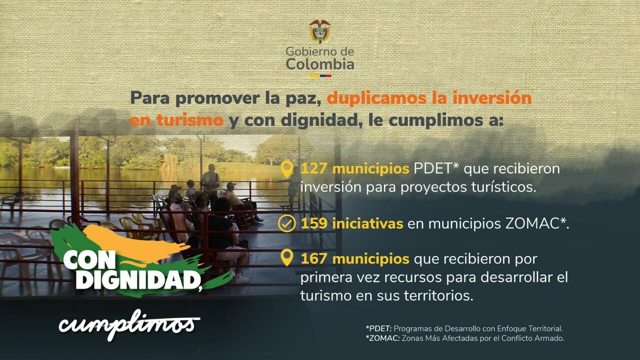 Esta iniciativa se enmarca en la apuesta del Gobierno del Cambio por un turismo que impulse la Economía Popular, fortalezca el desarrollo regional y contribuya a la transformación social de los territorios, reconociendo la diversidad cultural, natural y humana que hace de Colombia un país único.